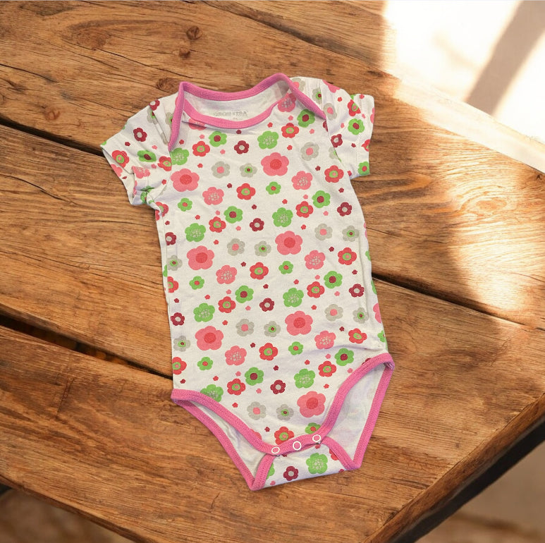Body pour bébé fille, manches courtes, blanc motifs fleuri.