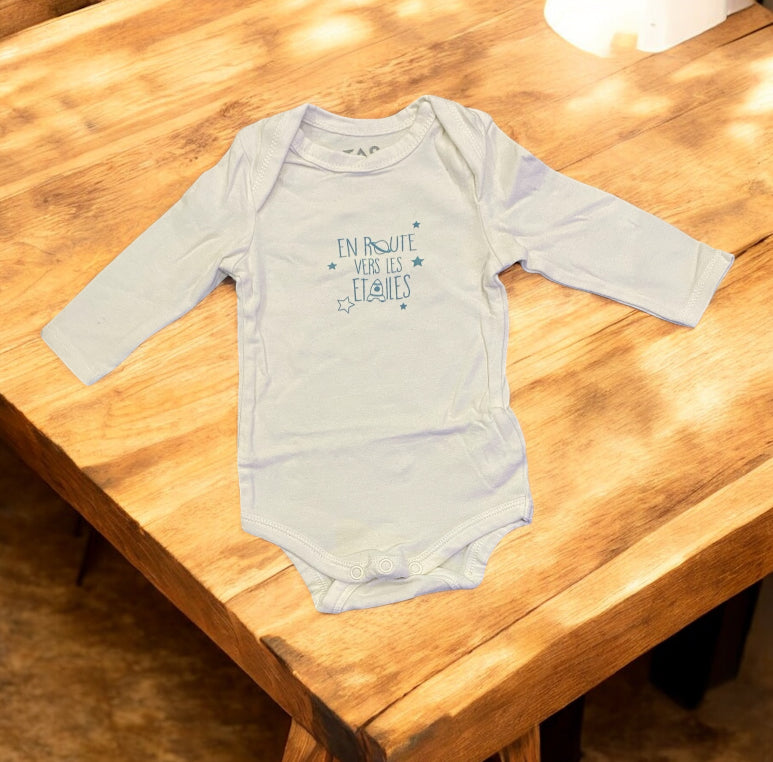 Body pour bébé garçon, manches longues, blanc, inscription "En route vers les étoiles".