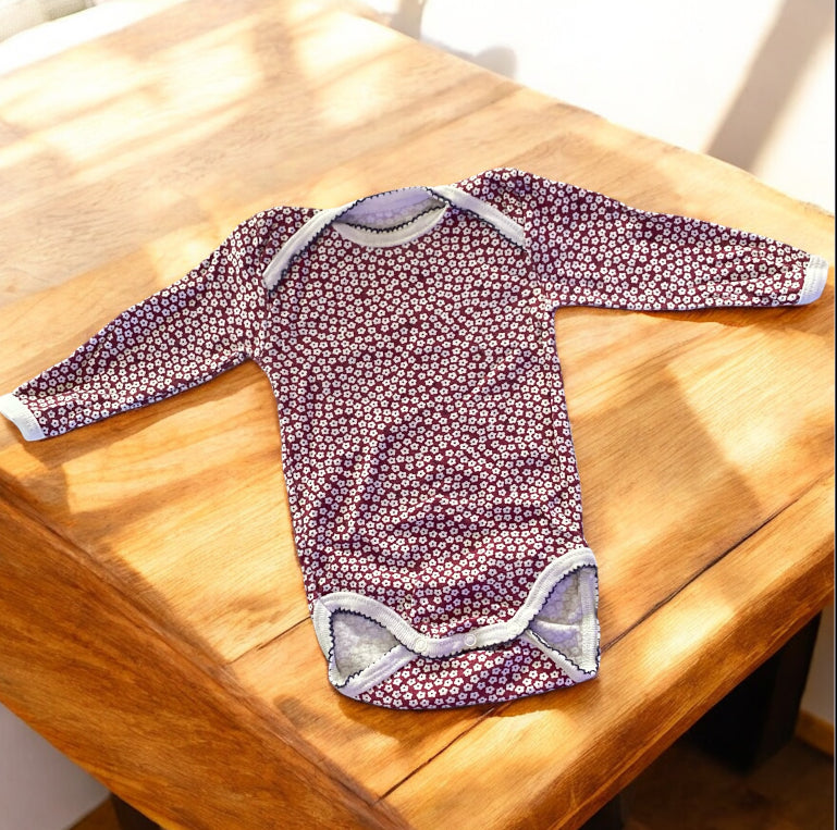Body pour bébé fille, Manches longues, rouge fleuri.