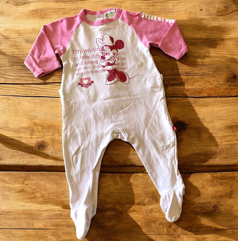 Disney baby. Pyjama dors-bien, coton pour bébé fille. Minnie, rose clair et rose. 9 mois.
