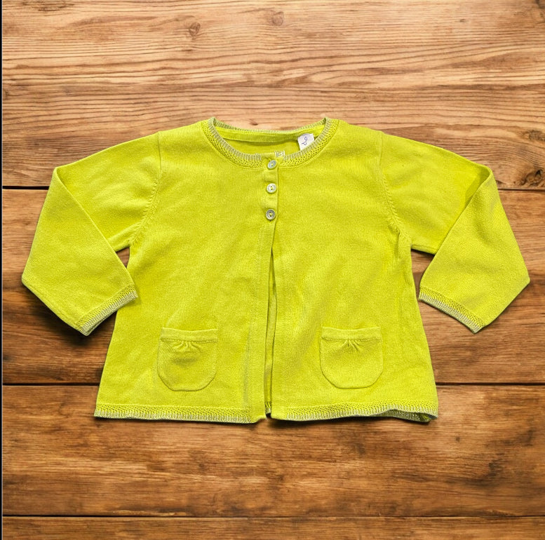 Gilet pour bébé, fille, vert, motif papillon dans le dos.