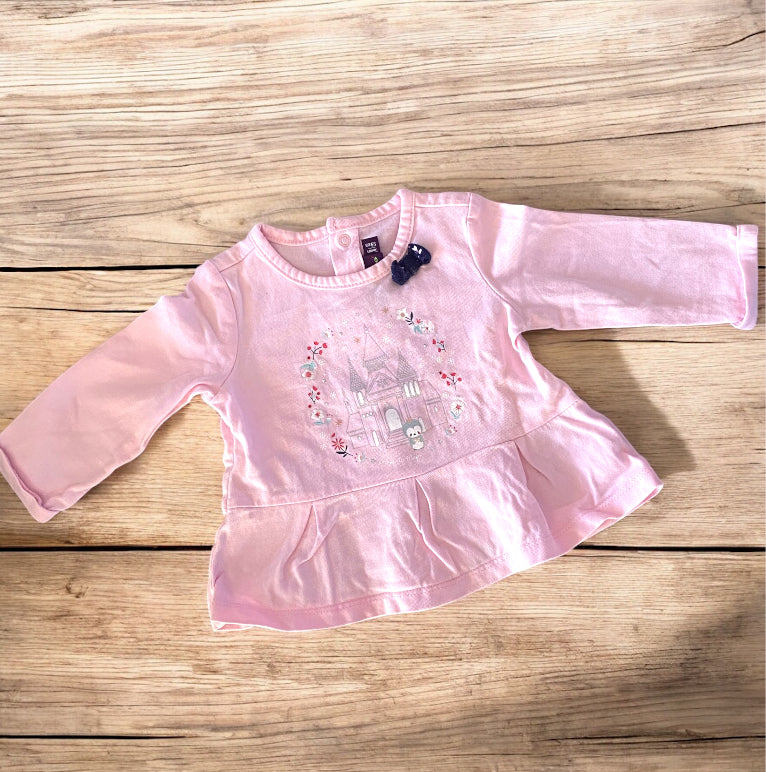 Haut tunique pour bébé fille, rose, motif château et princesse pingouin.