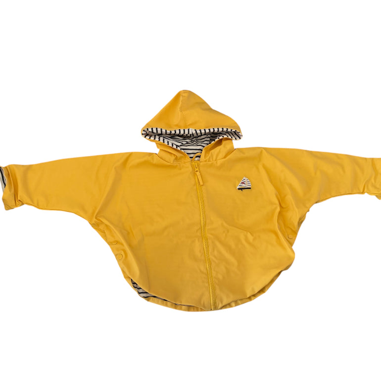 Imper cire bébé garçon, jaune, doublé, à capuche, façon Poncho. Terre de Marins. 23 Mois.