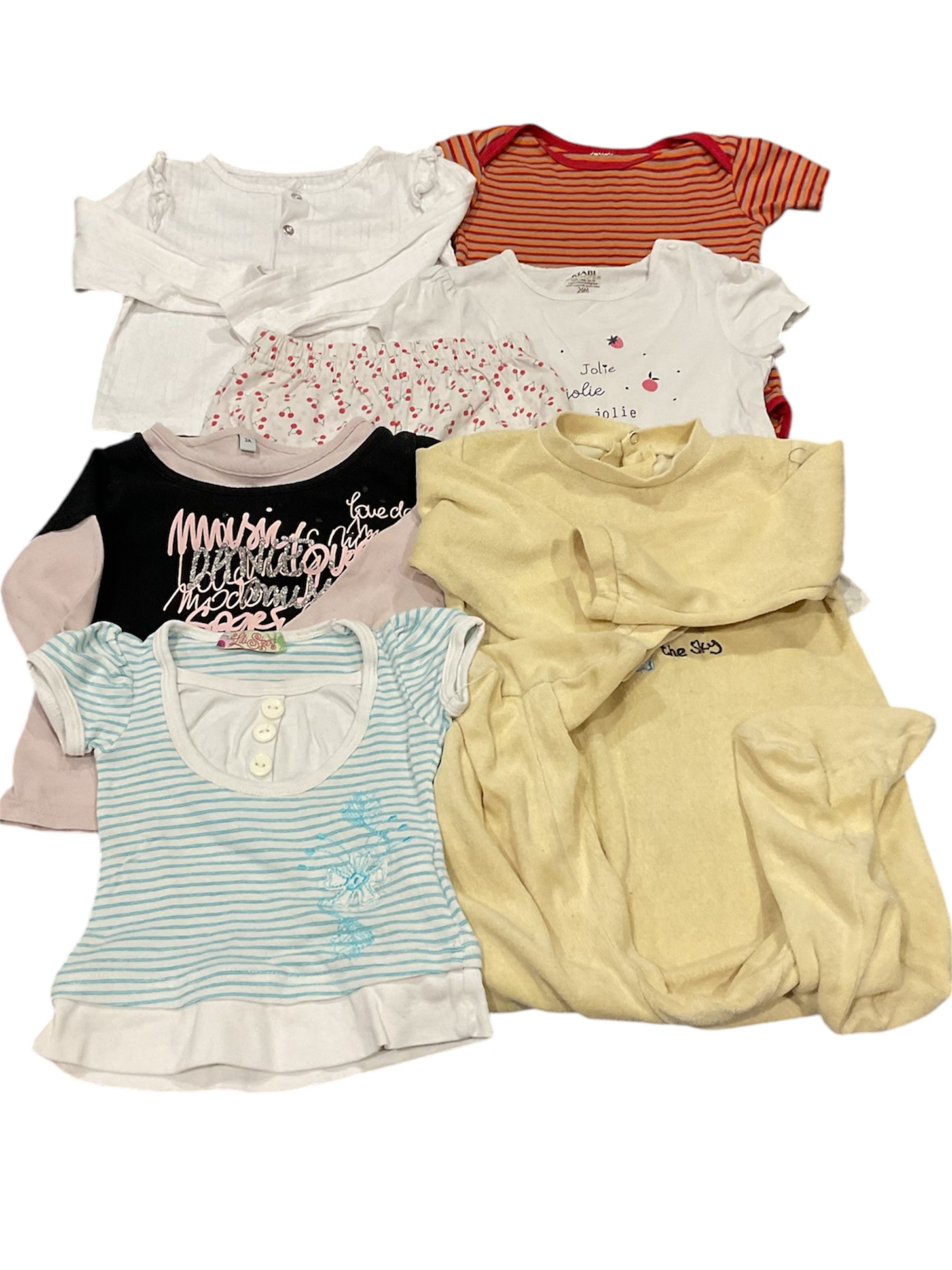1 T-shirt blanc, motif fruits d’été 36 mois. 0,5€