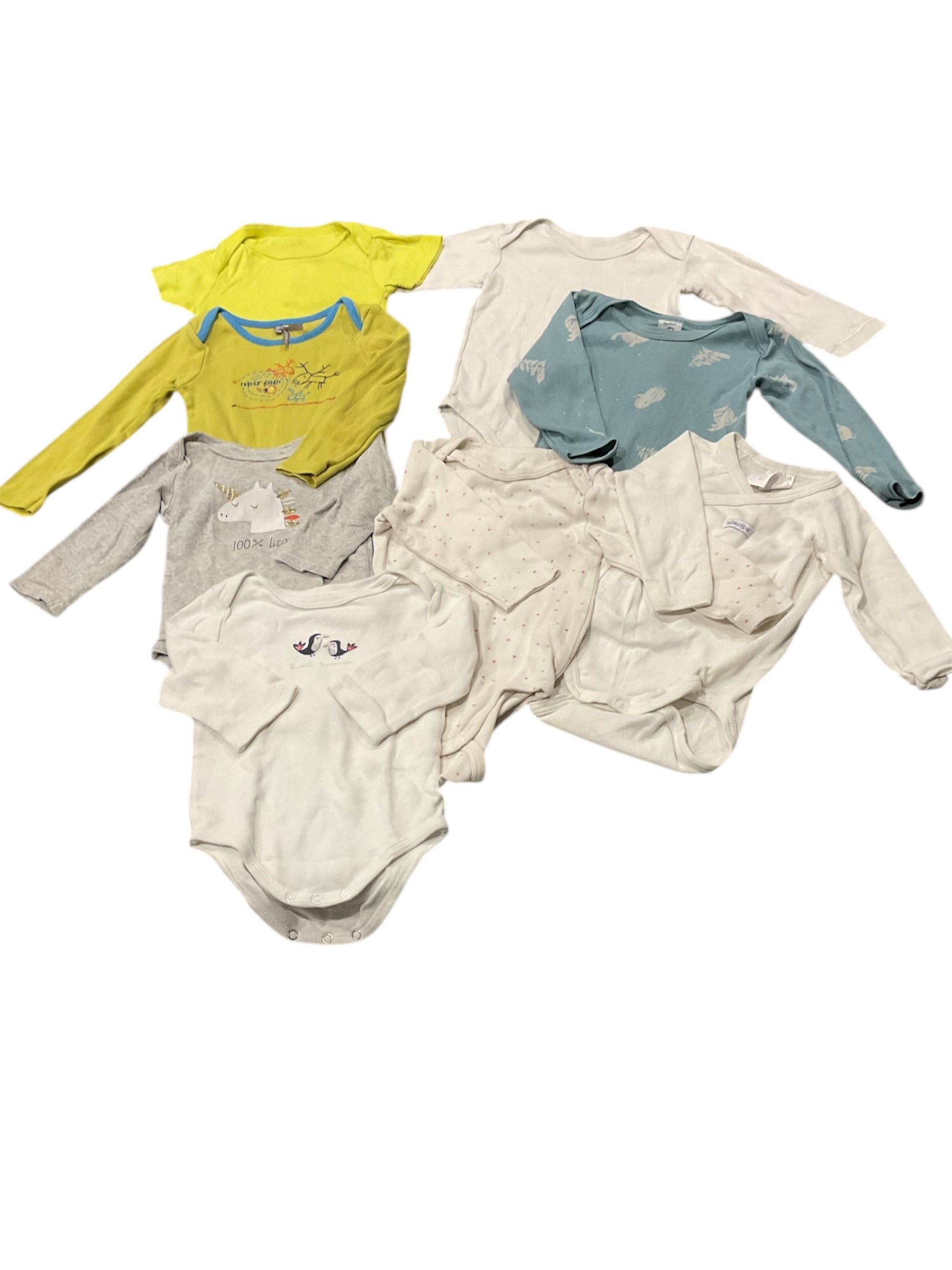 1 body manches longues, gris, motif licorne, 6 mois. 0,20€