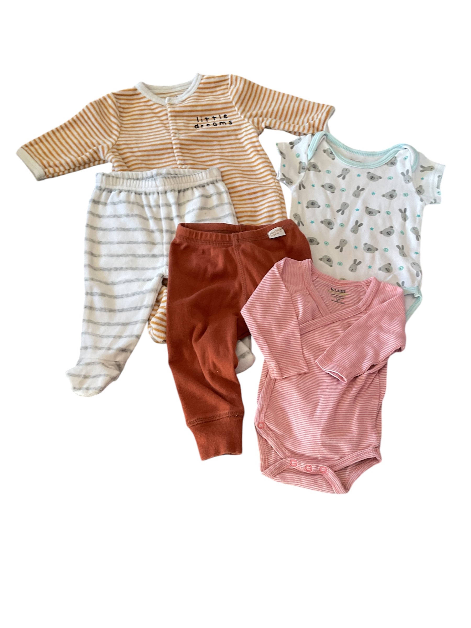 1 pyjama velours rayé jaune et blanc, 1 mois. 0,50€
