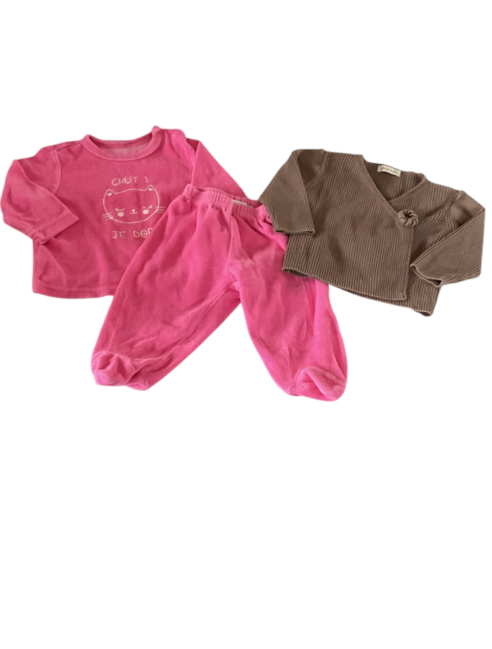1 ensemble pyjama velours bas + haut rose, 12 mois. 1 € (0,50€ x 2)