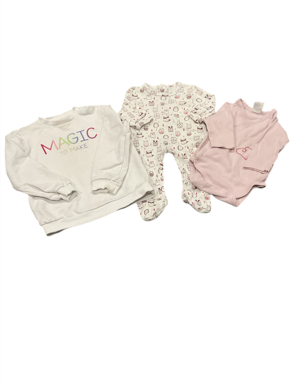 1 body croisé manches longues rose motif cœur 3 mois. 0,20€