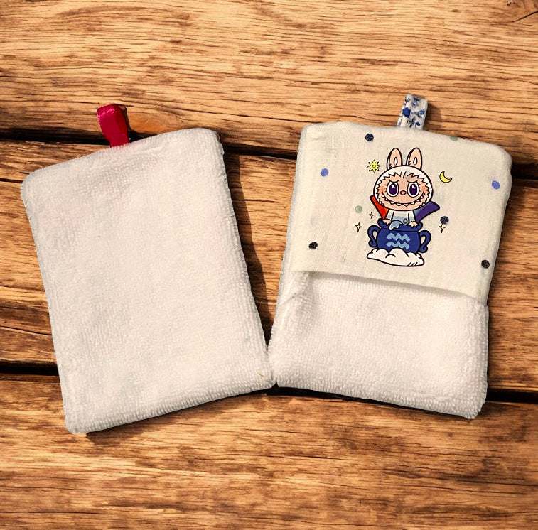 Débarbouillettes, douces et lavables, ornée d’un motif petit monstre, parfaites pour rendre chaque toilette encore plus magique.