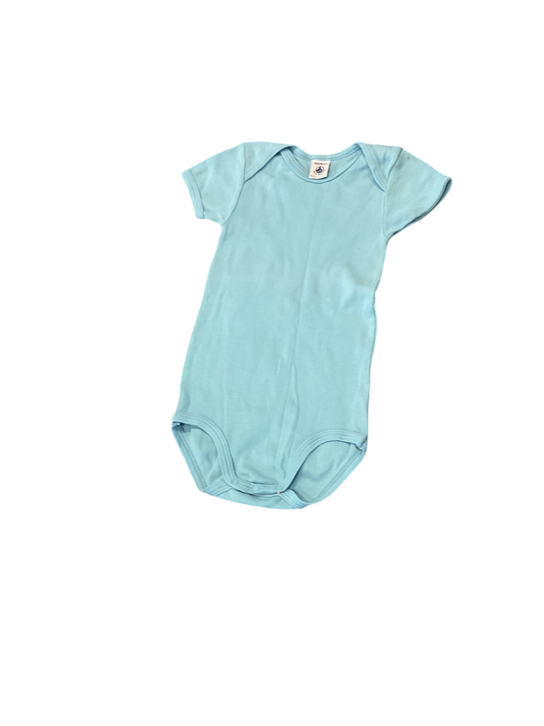 1 body bleu turquoise uni. Ouverture par boutons à l’entrejambe.