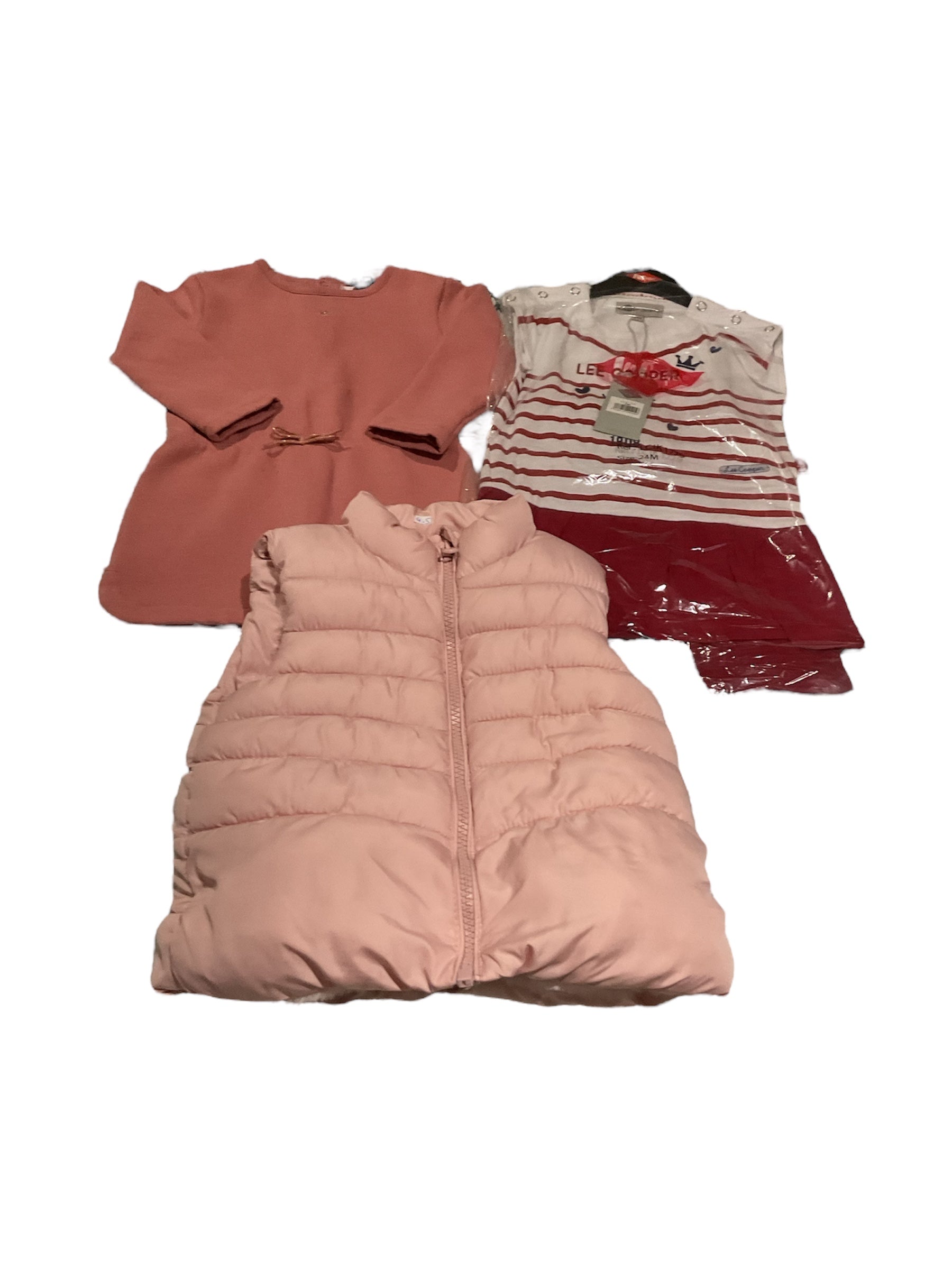 - 1 doudoune rose, sans manche, intérieur fausse fourrure rose, 18-36 mois. 4,50€