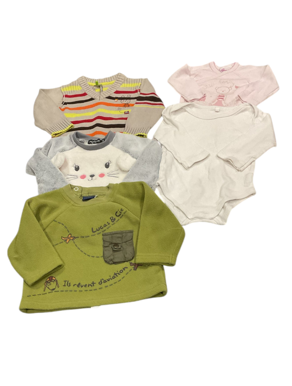 - 1 pull en mailles rayé coloré, 6 mois. 0,50€