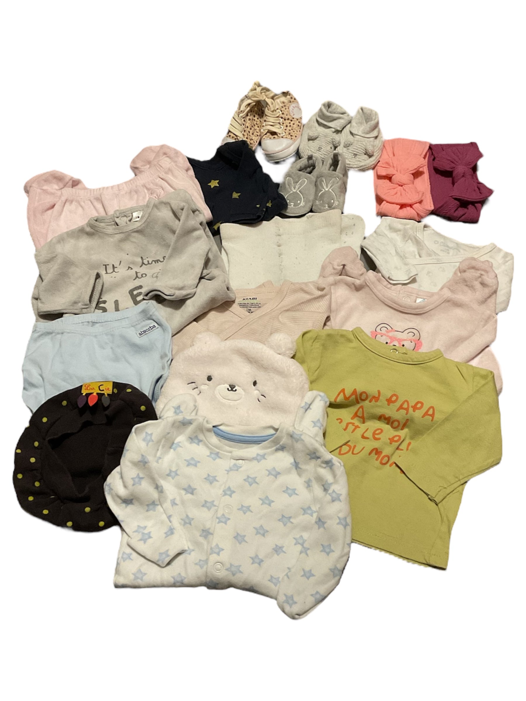 - 1 pyjama coton, blanc motif étoiles bleu, 1/3 mois. 0,50€