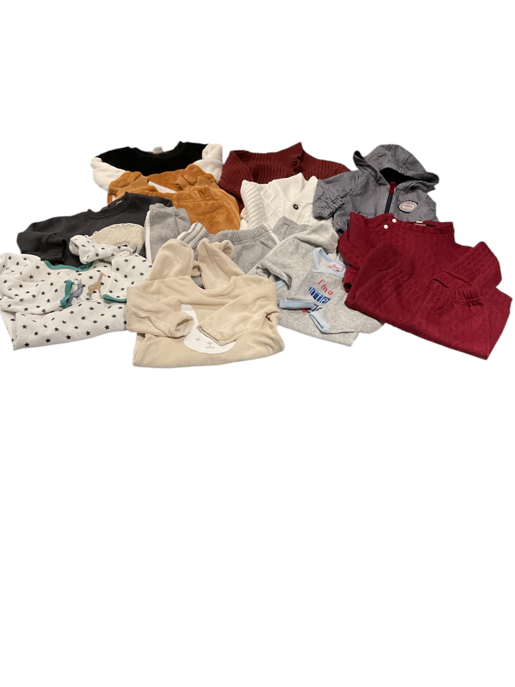 - 1 ensemble 2 pièces, Sweat motif maille couleur brique rouge + pantalon assorti, 6-9 mois. 4€
