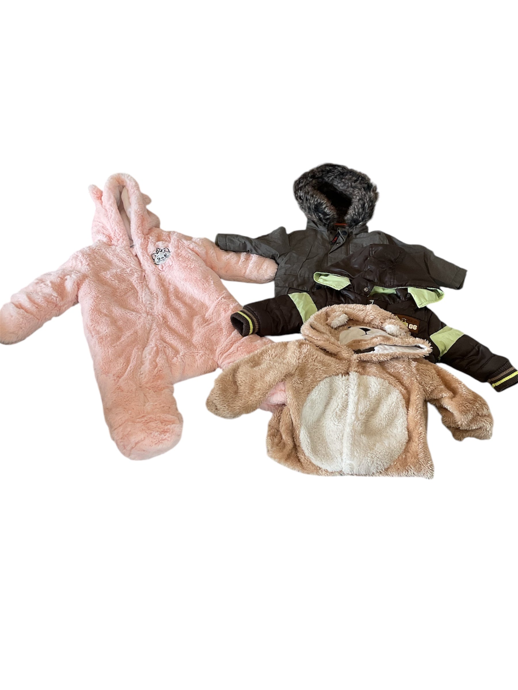 - 1 combi pilote avec capuche et pieds, beige et blanche, ourson, 9 mois. 3€