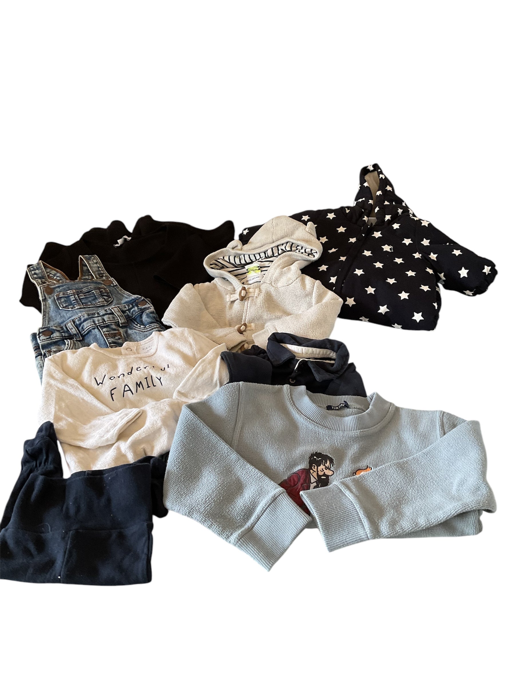 - 1 combi-pilote, à capuche, Petit Bateau, bleu marine étoiles blanches, 3 mois. 5€