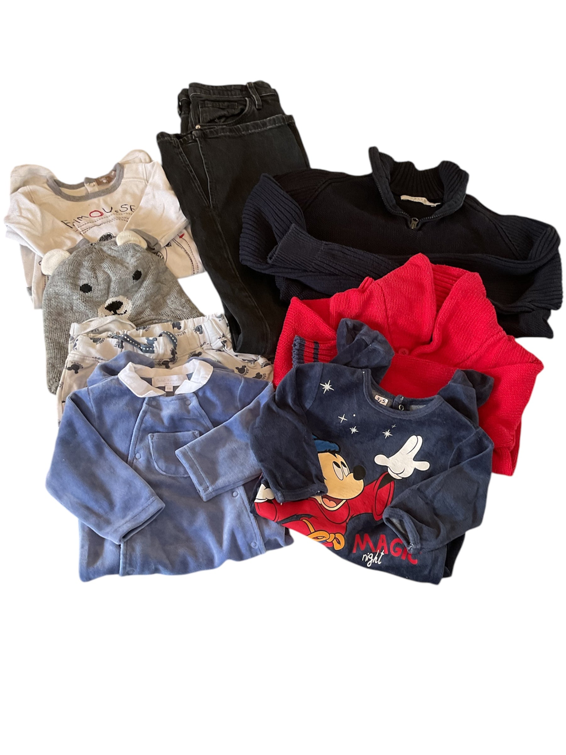 - 1 pyjama dors-bien velours, bleu marine, motif Mickey, 9 mois. 3,5€