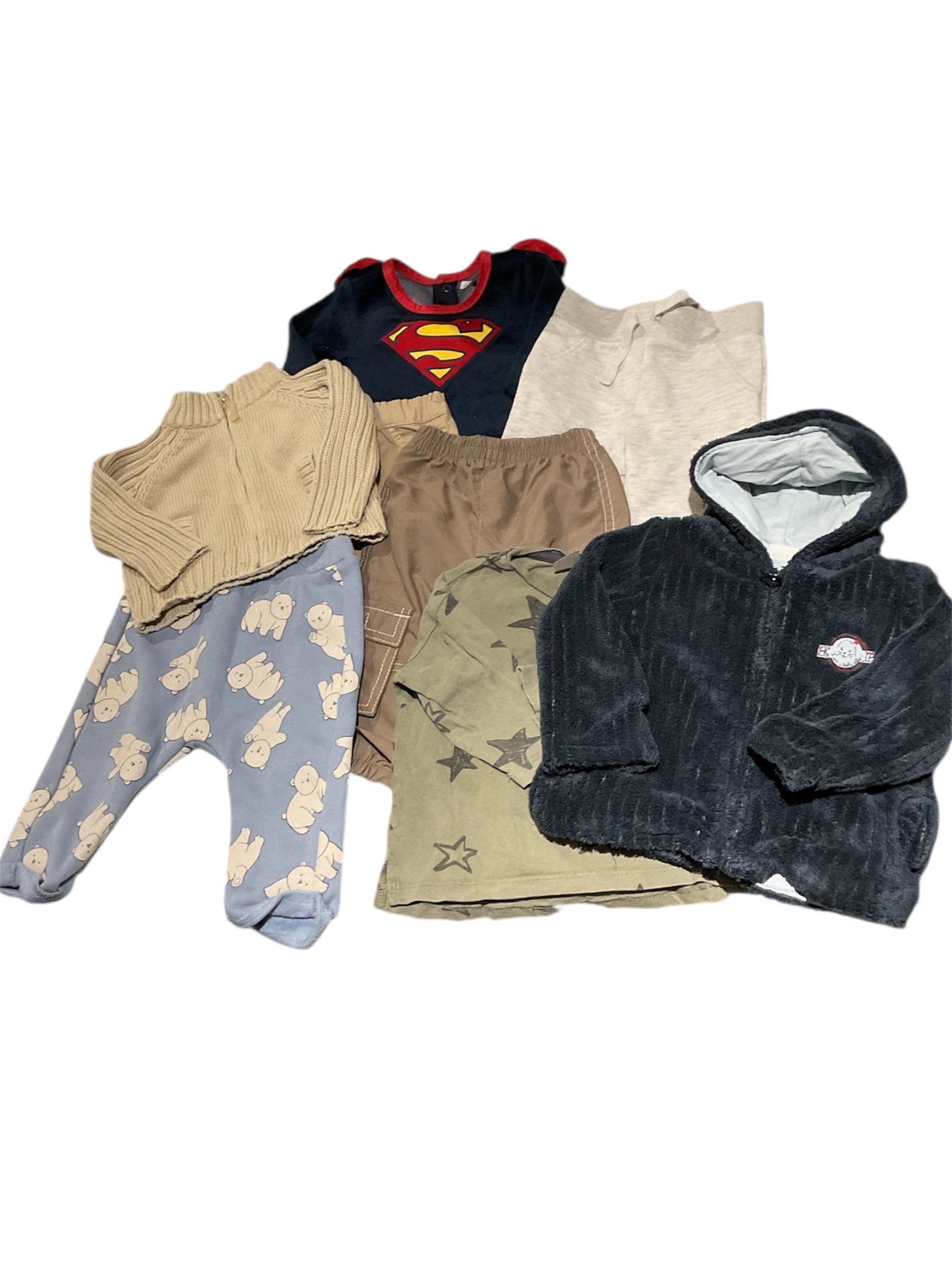 - 1 pyjama dors bien, velours, Superman, bleu marine et rouge, 6 mois. 3€