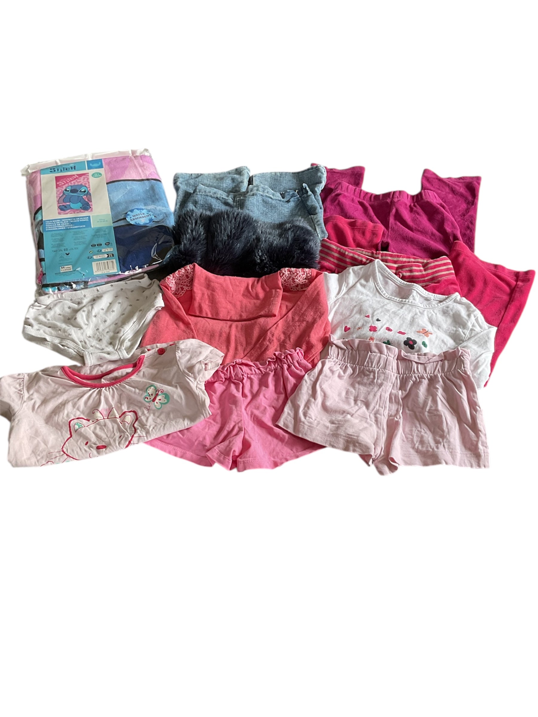 - 1 short rose clair, motif tigre, 36 mois. 0,50€