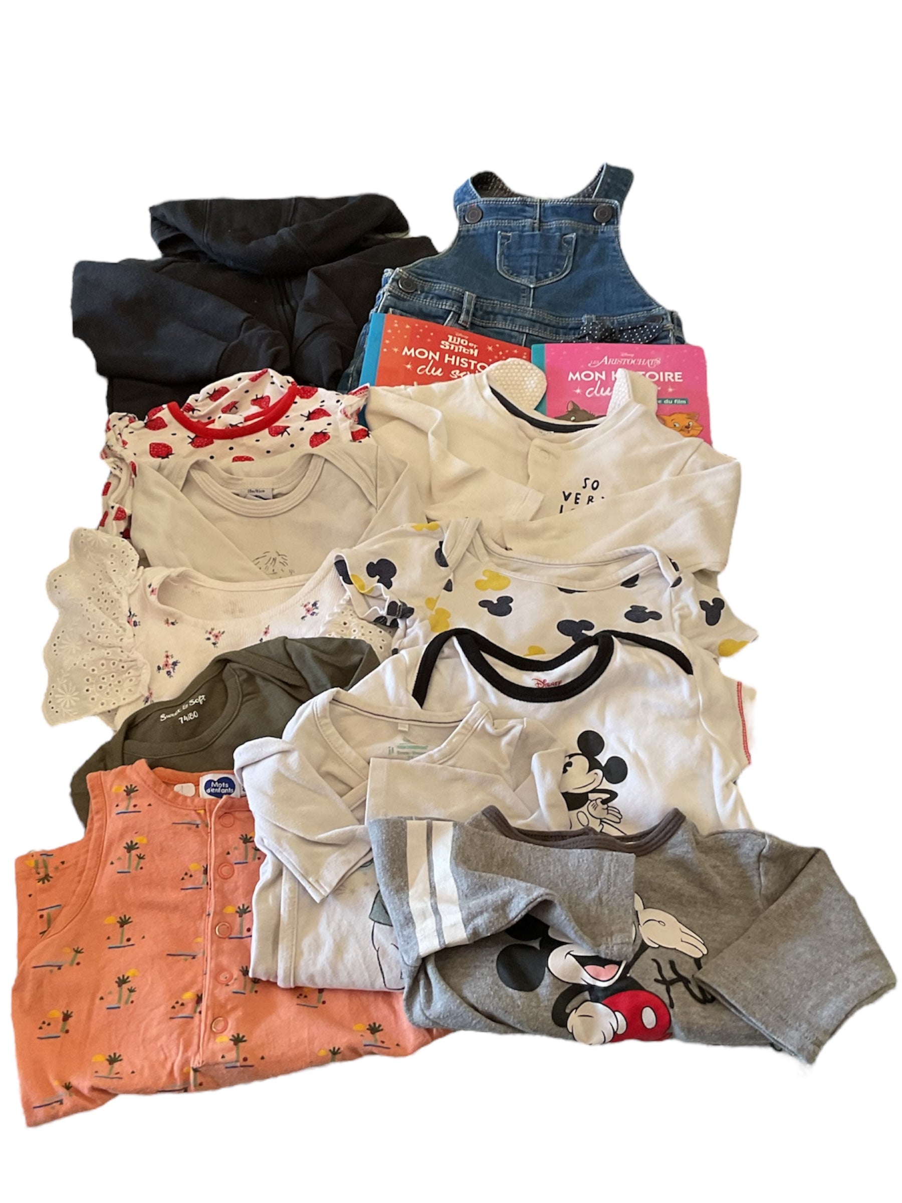- 1 body manches courtes, motifs têtes Mickey colorés, 18 mois. 1€