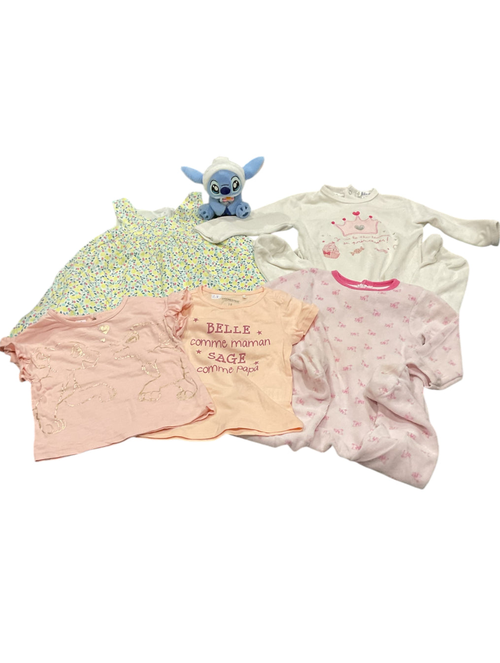 - 1 pyjama velours rose, motif petits lapin, 18 mois. 3€