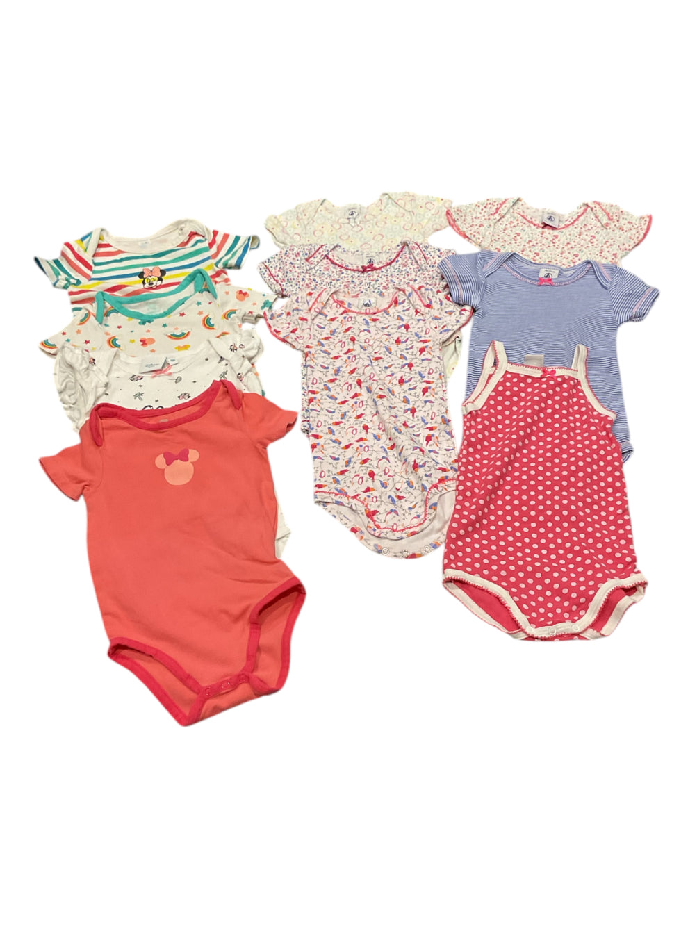 - 1 lot de 4 body Disney Minnie en taille 18 mois. 1 body manches courtes rose et corail motif tête de Minnie, 1 body sans manche blanc motif tête de Minnie, 1 body manches courtes motif Minnie et arc en ciel coloré, 1 body blanc rayé coloré motif tête de Minnie. 7,5€