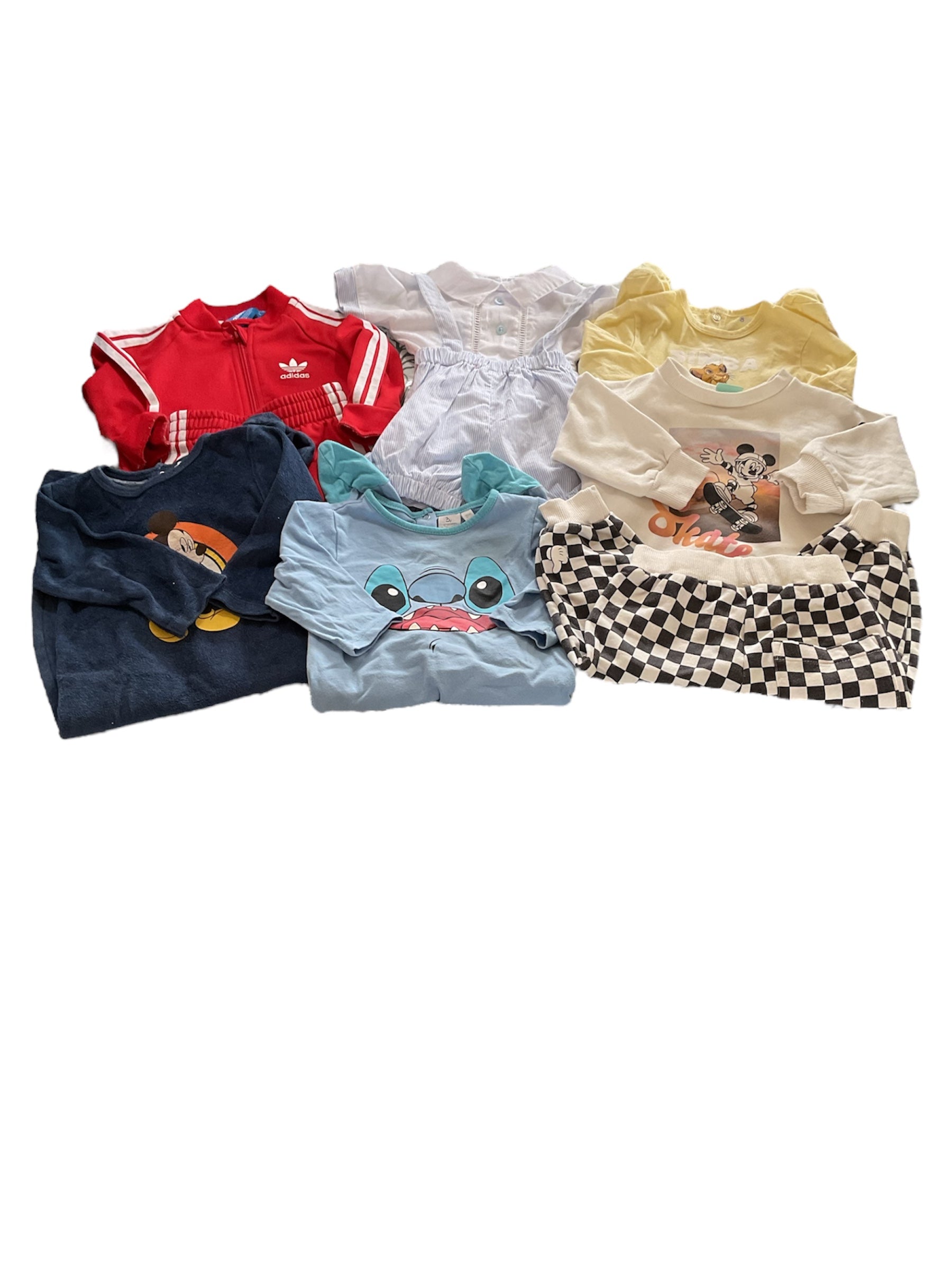 - 1 ensemble 2 pièces sweat blanc Mickey skate + pantalon damier noir et blanc, 9 mois. 5,30€