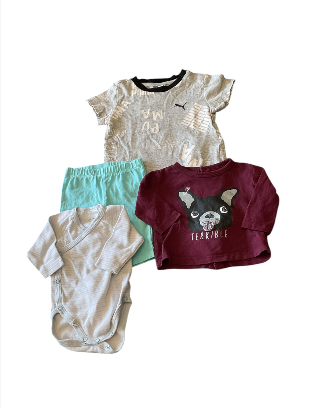 - 1 teeshirt manches courtes Puma, gris noir et blanc, 6-9 mois. 4€