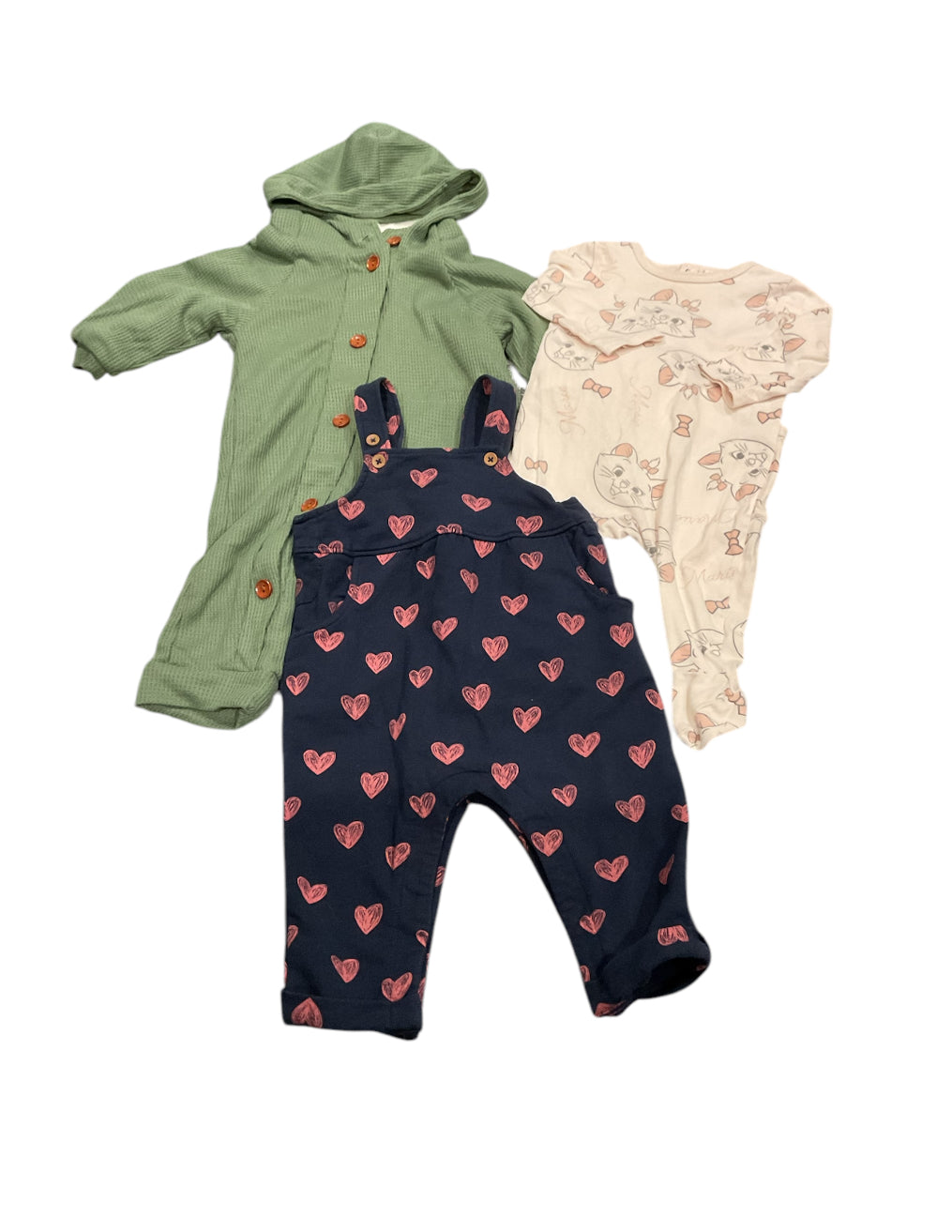 - 1 salopette longue bleu marine motif cœurs, 9 mois. 3,30€