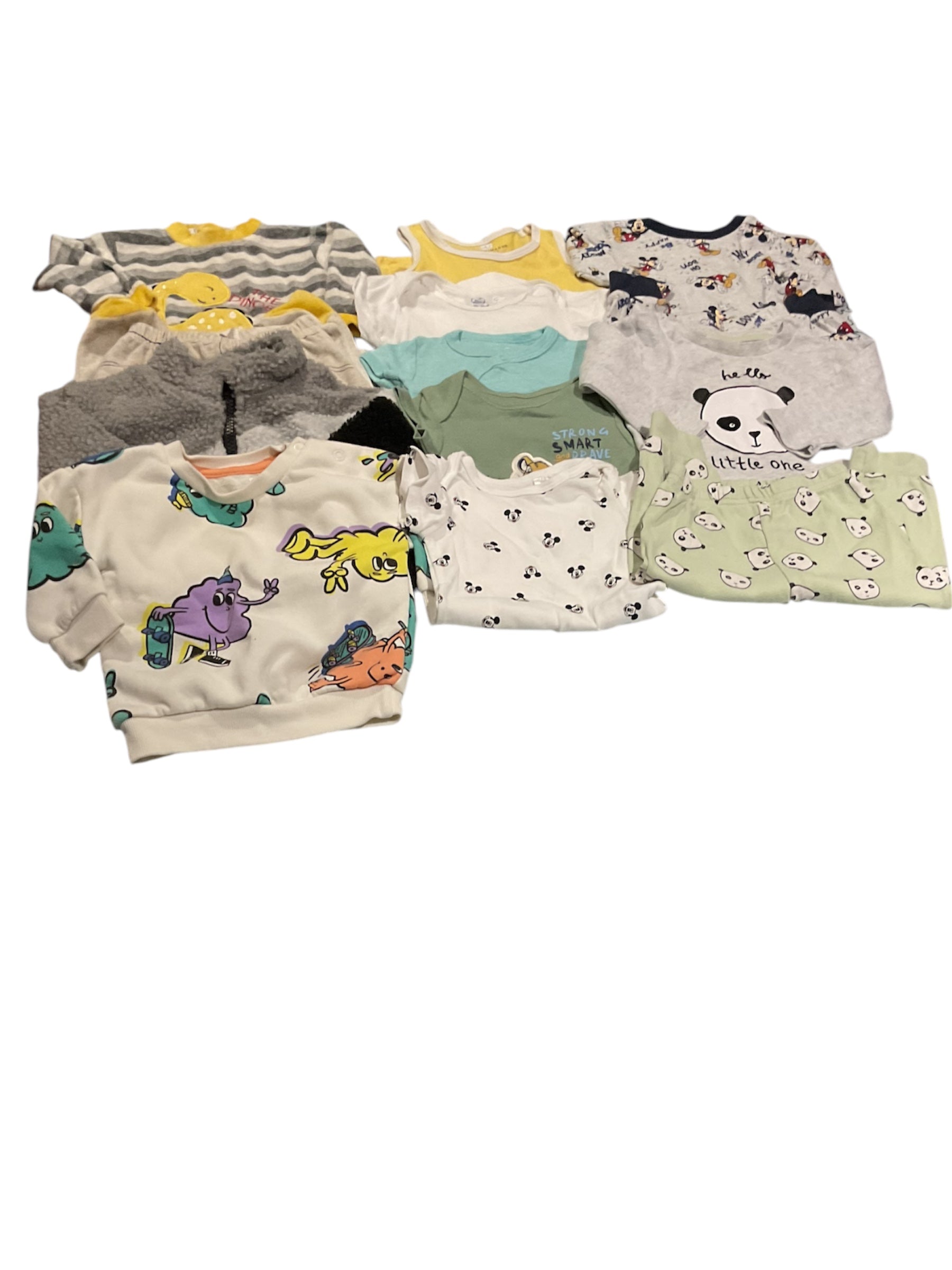 - 1 sweat à manches longues, blanc motif petits monstres, 3-6 mois. 2,50€
