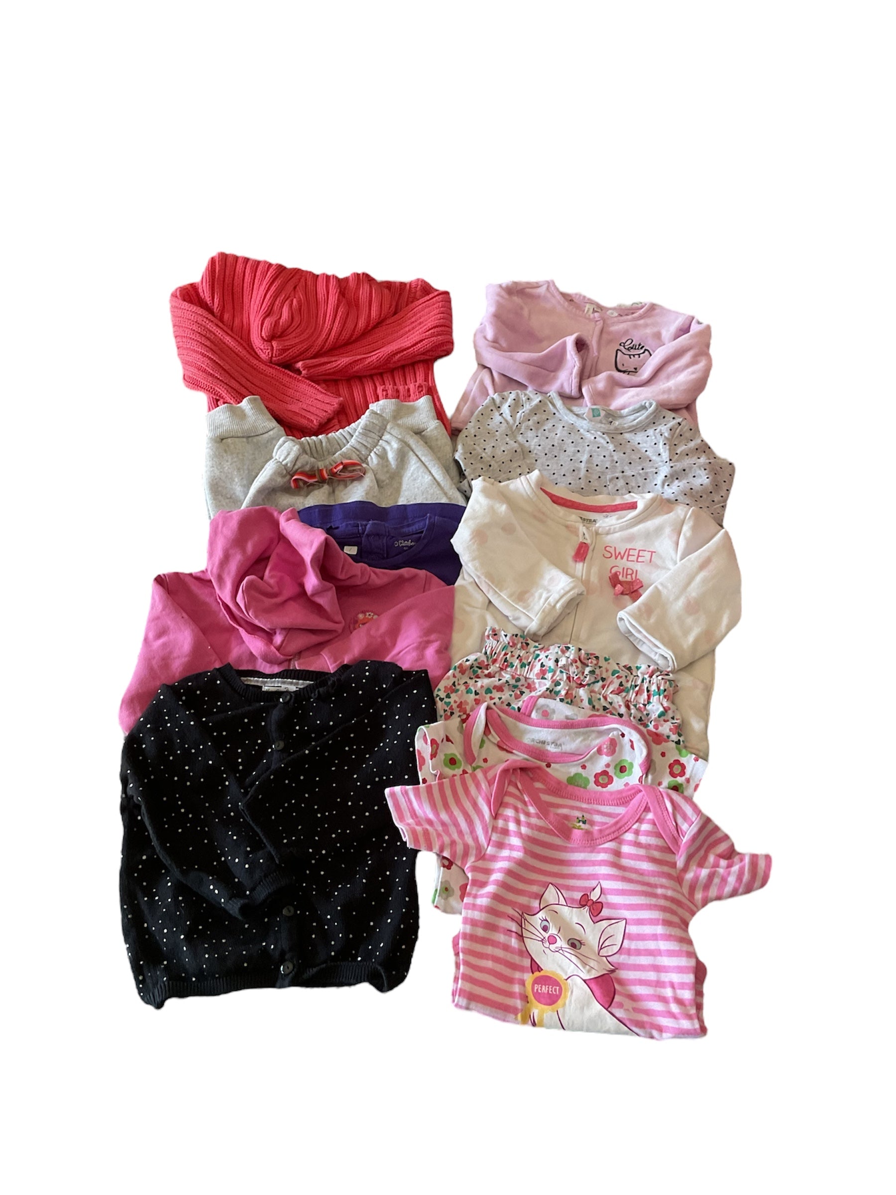 - 1 gilet à capuche, rose, 12 mois,2€.
