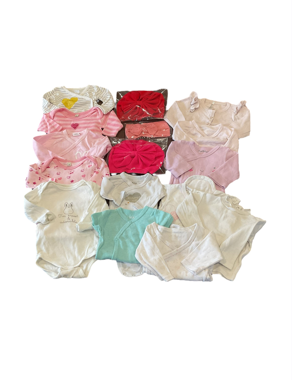- 1 body croisé manches longues, rose clair 1 mois. 0,20 €