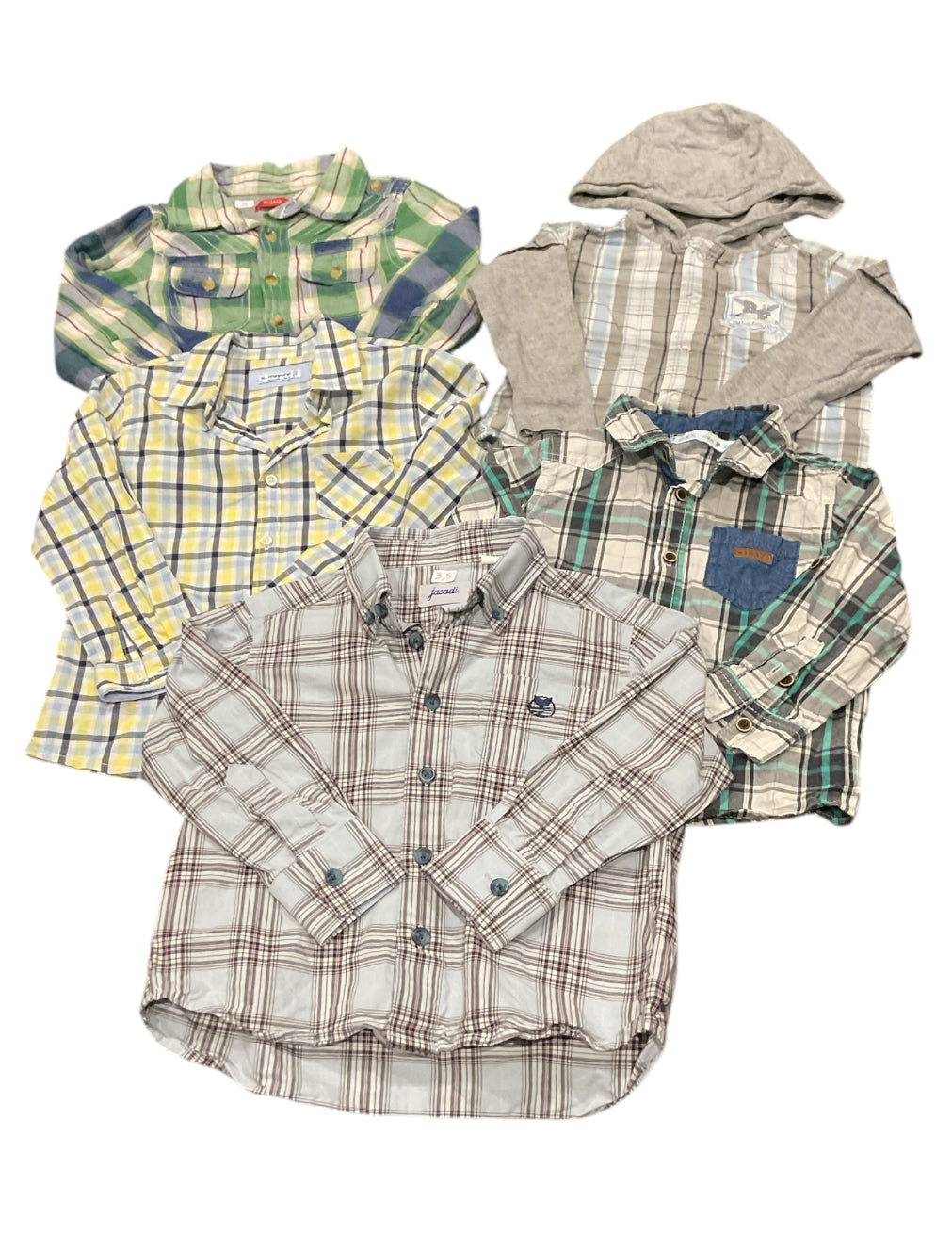 - 1 chemise manches longues, blanche à carreaux gris et vert, 24 mois. 2,5€