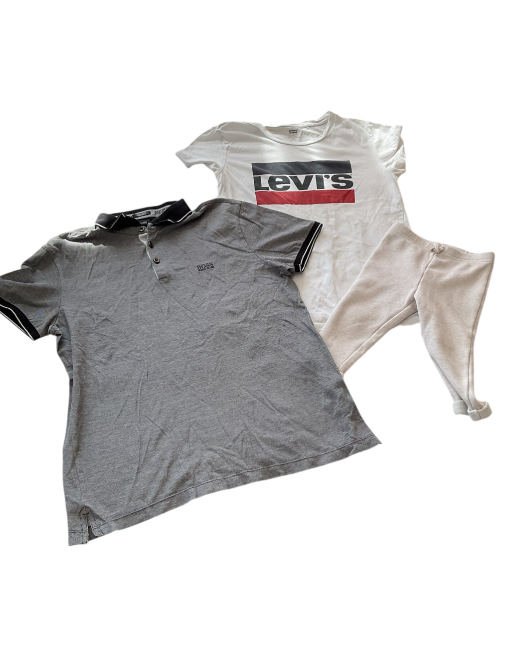 - 1 teeshirt manches courte gris Hugo boss taille M. 4€ ( petit accro arrière manches)