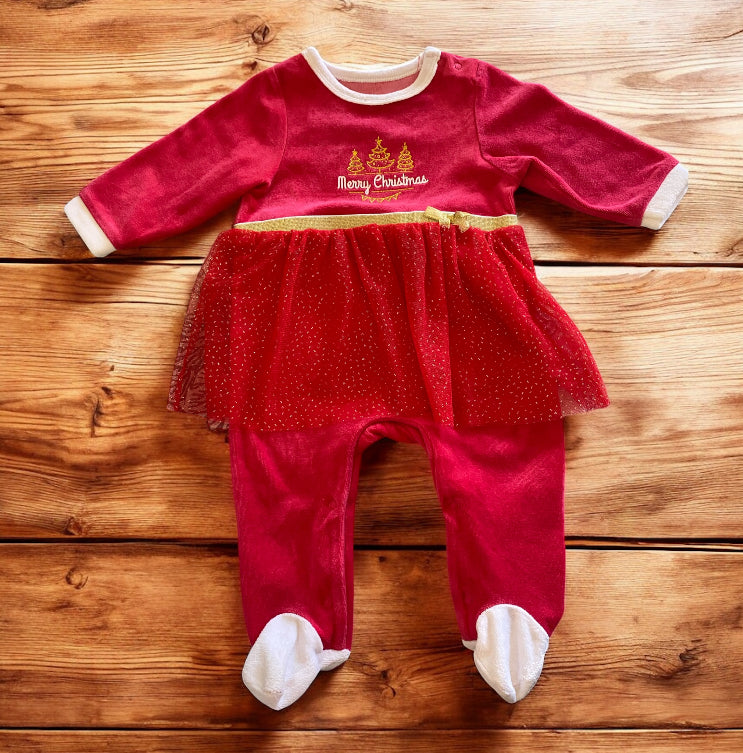 Pyjama velours pour bébé fille, rouge avdc jupon en tulle pailleté, Mots d’enfants. 9 mois.