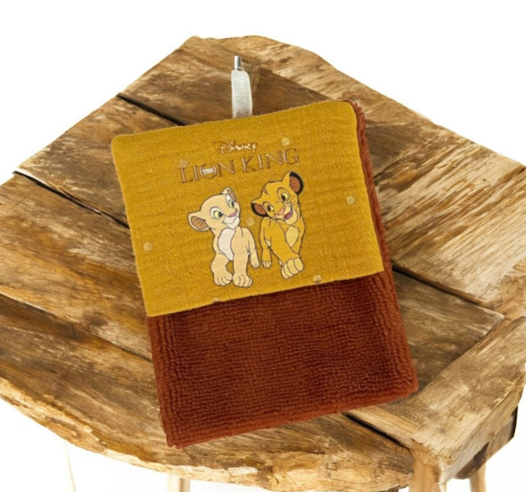 Débarbouillette savane, douce et lavable, ornée d’un motif Lion, parfaite pour rendre chaque toilette encore plus magique.