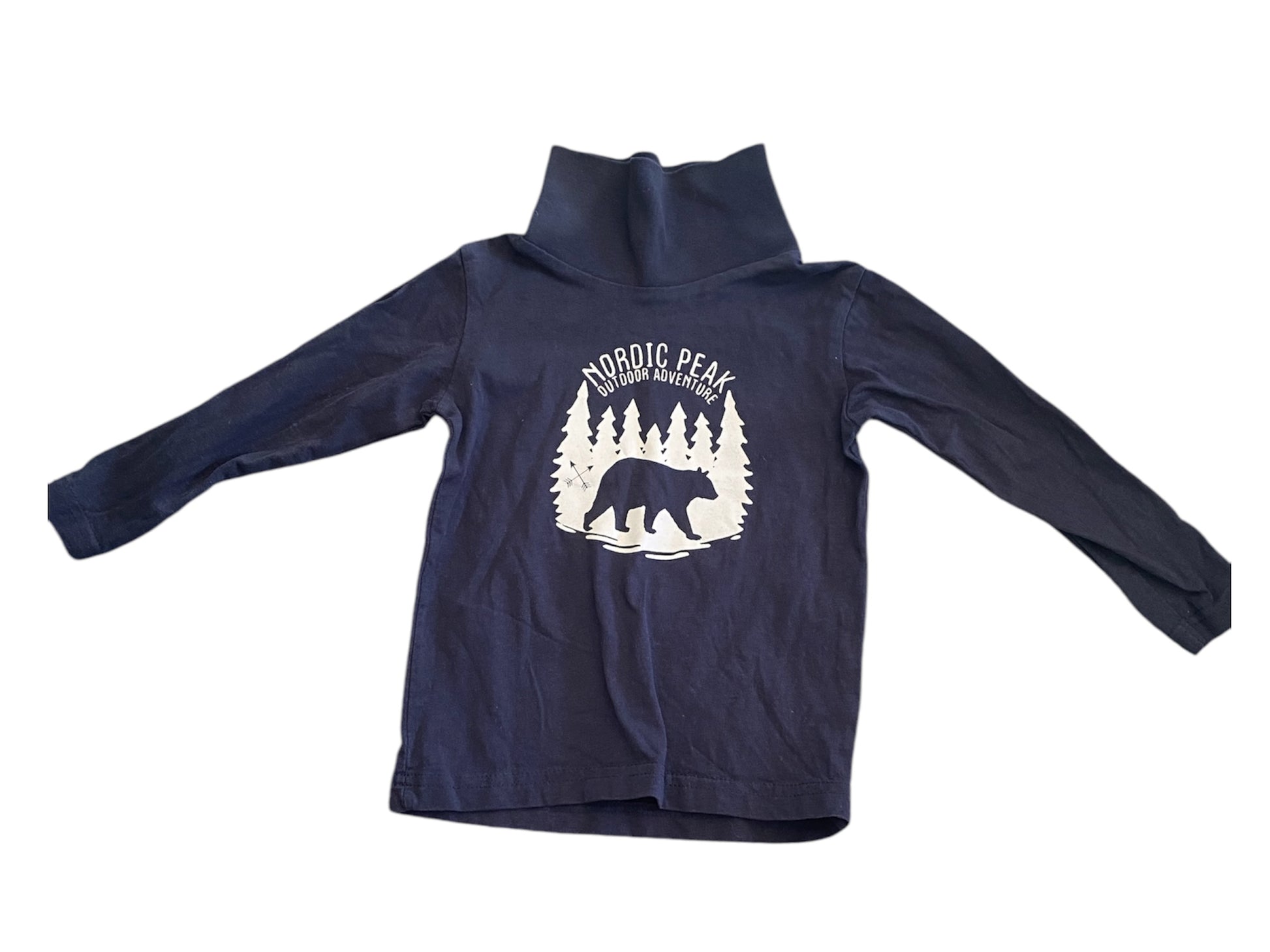 Pull col roulé, bleu marine, Motif imprimé Ours Polaire, 3 ans. Basic NPO.