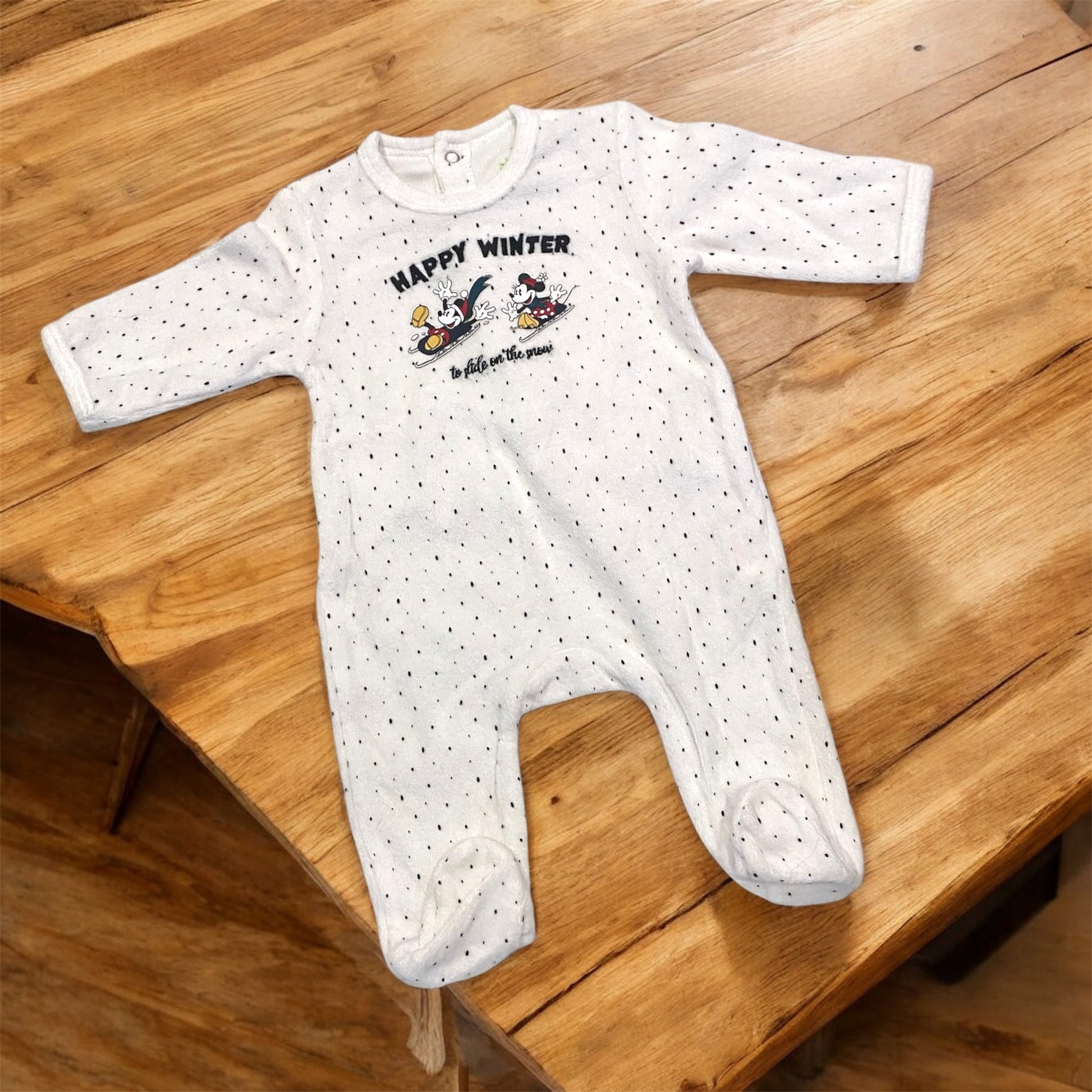 Pyjama velours, Blanc Mickey et Minnie, 3 Mois.