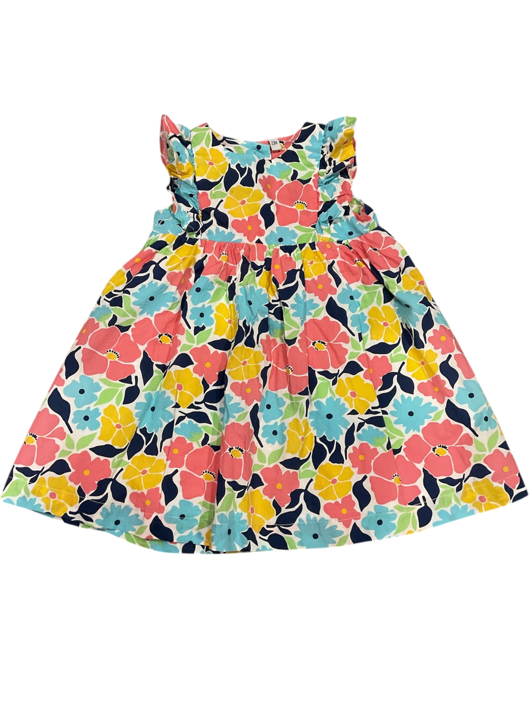 Robe à manches courtes en taille 23 mois. Son motif fleuri multicolore illumine l’ensemble, offrant un style vibrant et joyeux, parfait pour toutes les occasions. Les petits volants délicatement placés au niveau des manches apportent une note élégante et raffinée. Légère et confortable, cette robe est idéale pour les journées ensoleillées, permettant à votre enfant de bouger librement tout en restant stylée.