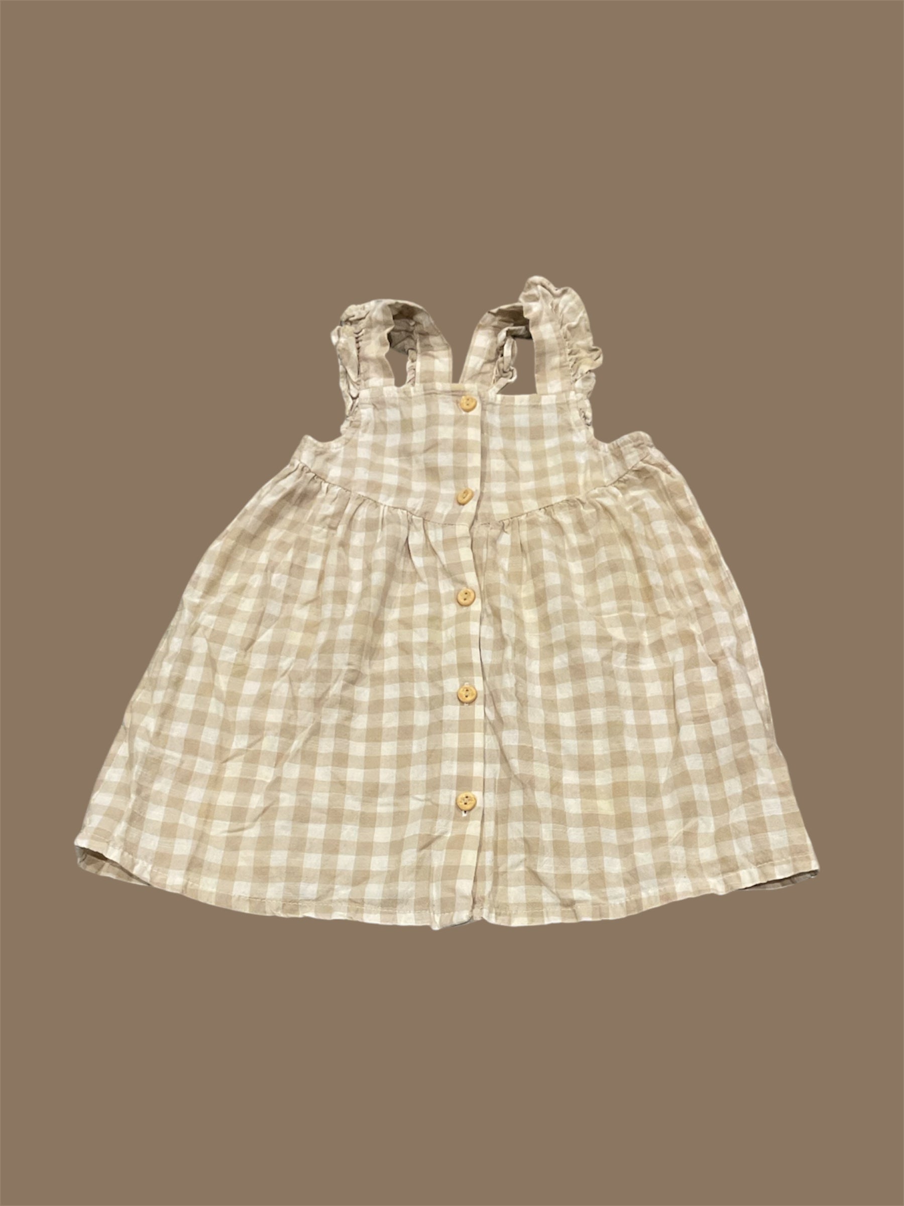 Robe en Vichy beige, 100% coton, à bretelles en taille 18 mois.