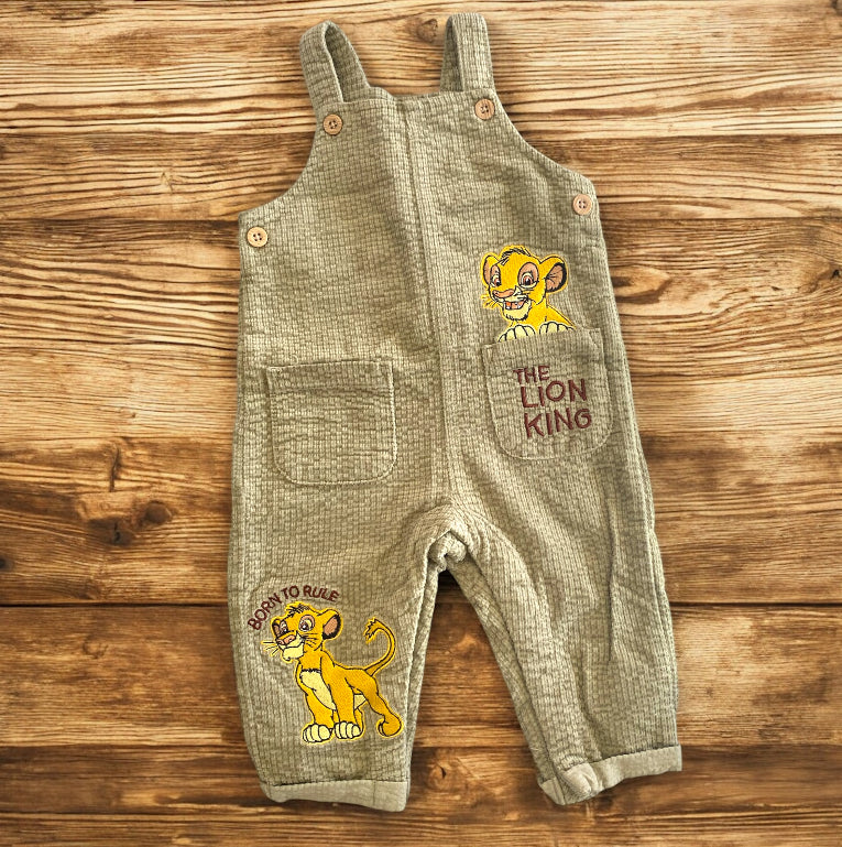Salopette pour bébé garçon, velours, vert motif Simba, à bretelles.